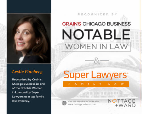 The Chicago divorce and family law attorneys at Nottage and Ward, LLP are proud to announce that our colleague Leslie Fineberg has been recognized by two of the most esteemed institutions in the legal field: Crain’s Chicago Business and Super Lawyers.